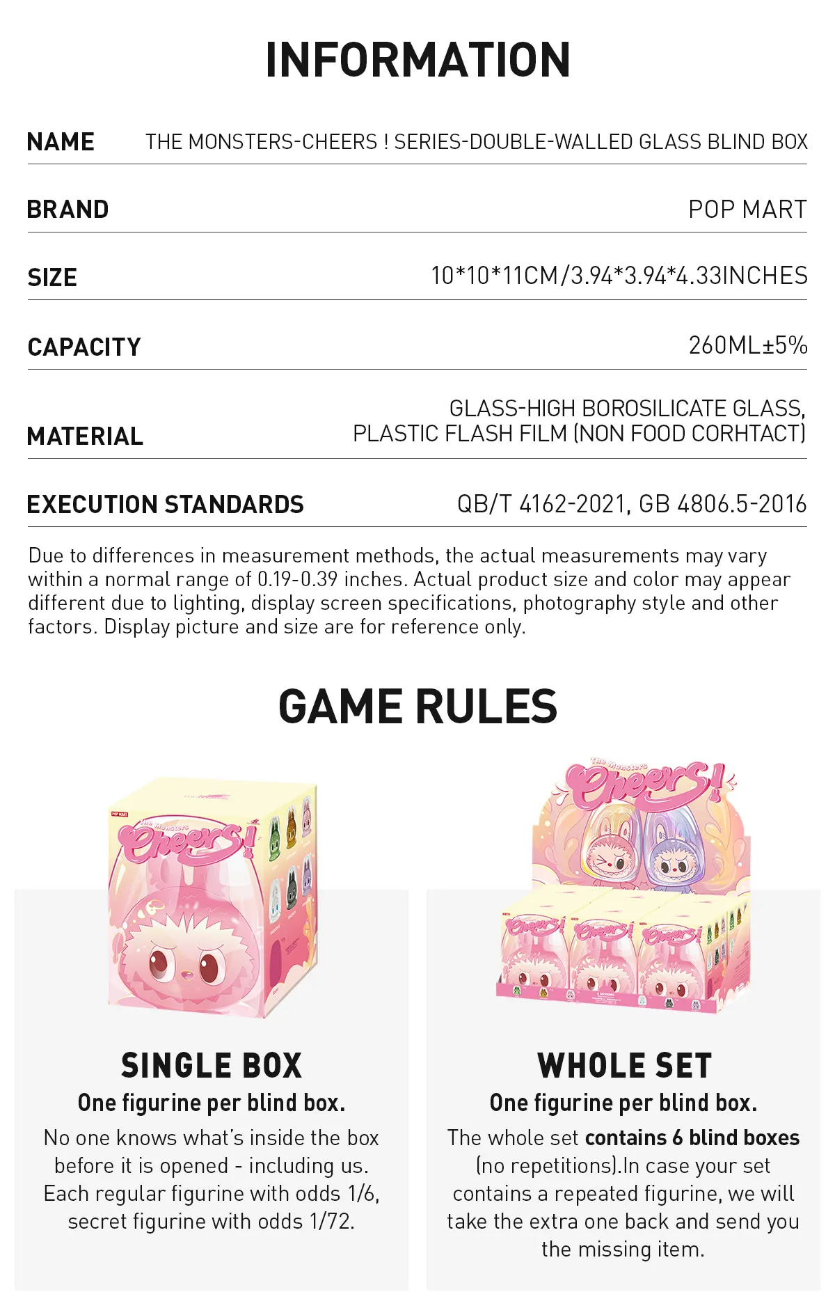 THE MONSTERS-CHEERS !SERlES-Double-walled Glass Blind Box