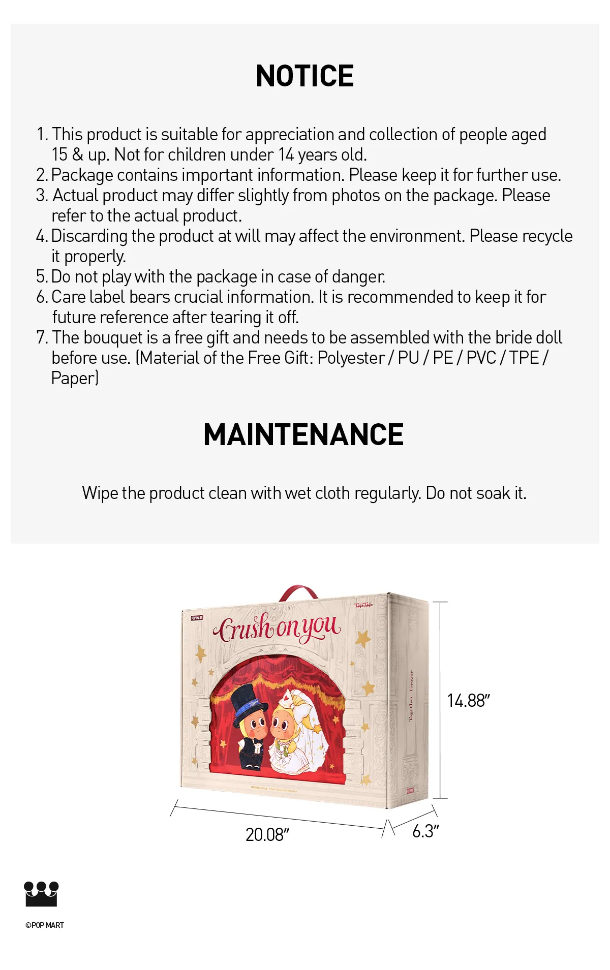 Is it 100% authentic and original?All products in our store are 100% genuine. You can verify their authenticity by checking our official website or visiting our physical stores. Our mission is to solve the issues you may encounter when purchasing trendy blind boxes, making the process more convenient and professional. We do not want to lose your trust due to counterfeit products. We hope you will introduce more friends to shop with us at popbox. Additionally, we have official authorization within China, and Pop Mart provides invoices. Don’t worry about any issues with the purchasing process. We wish you a pleasant and worry-free shopping experience